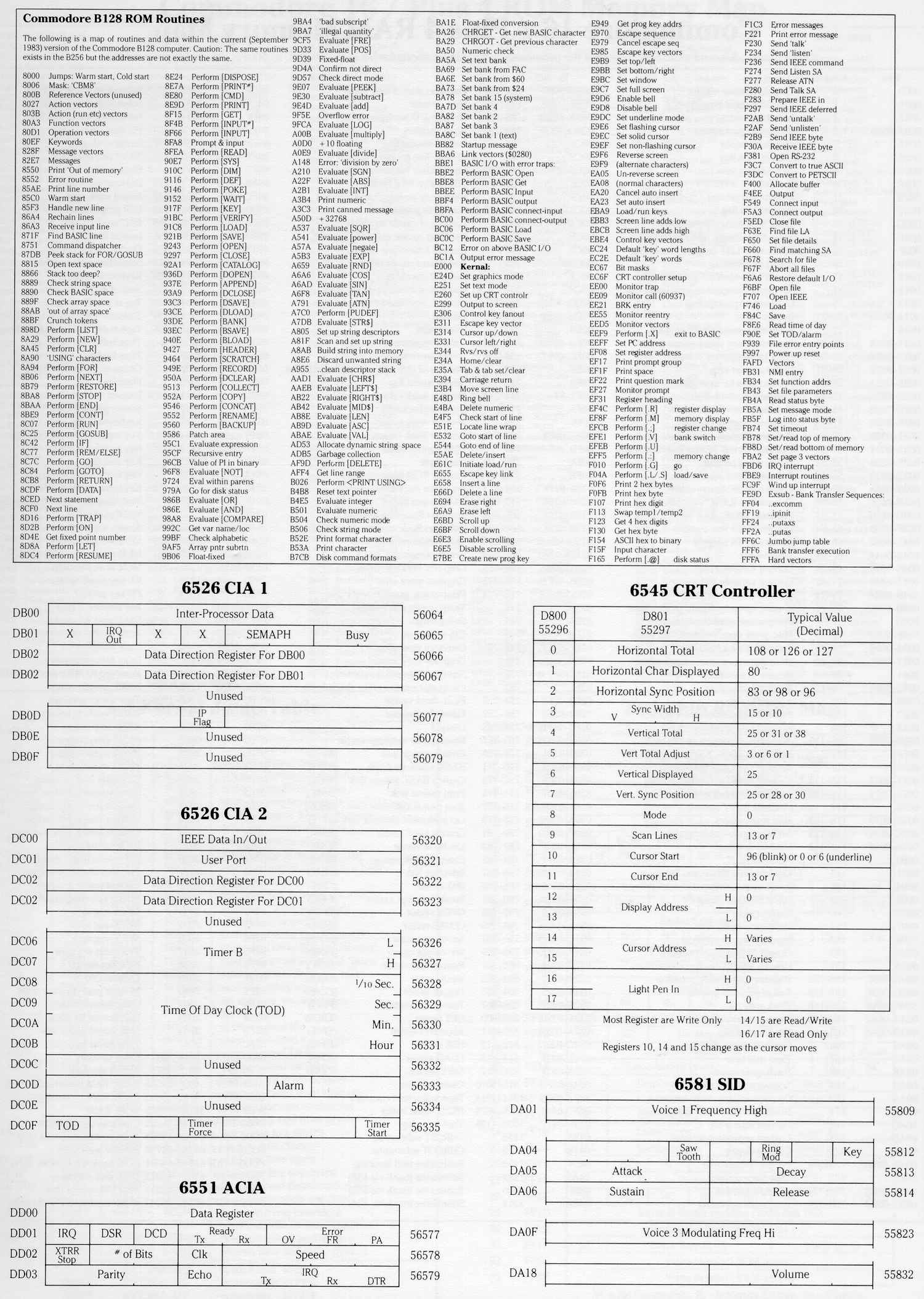Memory Maps for various Commodore 8-bit computers. Some of these are from ftp://x2ftp.oulu.fi/pub/cbm/maps/.
